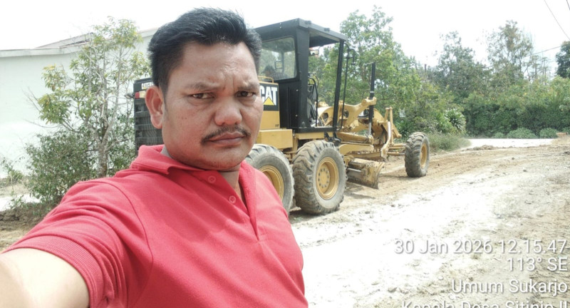 Kepala Desa Sitinjo II Umum Sukarjo Bako, di kegiatan Jumat bersih di Sitinjo II, Jumat (30/1/2026)